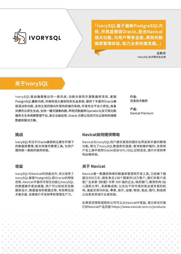 Navicat 案例研究- IvorySQL